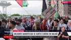During the afternoon of Saturday, A crowd of demonstrators gathered in the central square of the Swedish city before marching towards the competition siteWaving Palestinian flags.