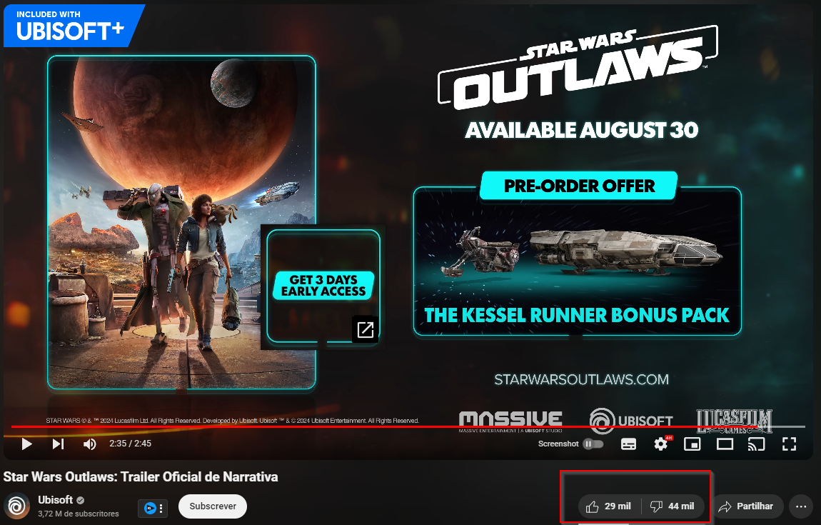 The new trailer for the movie Star Wars Outlaws raises a wave of criticism and dissatisfaction from many players and fans of the Star Wars saga. The video, which was posted on YouTube, was the target of a barrage of dislikes, raising questions about what could have sparked such a negative reaction.